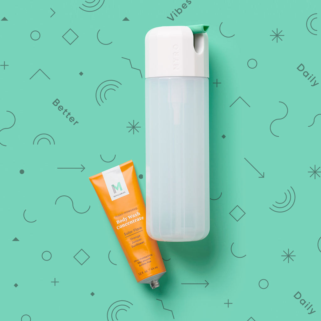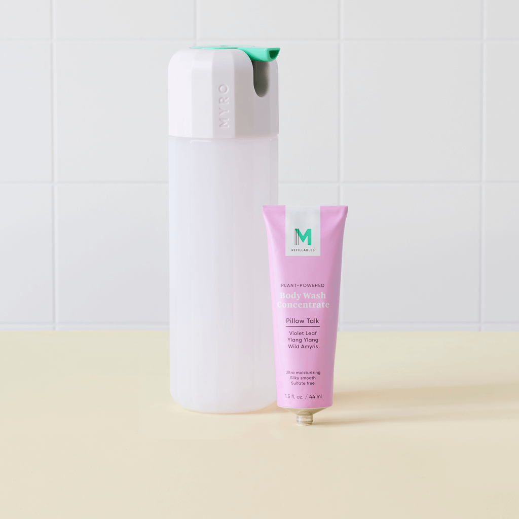 Our reusable body wash bottle will be the last body wash bottle you’ll ever buy. It’s thoughtfully designed to work with our plastic-free refill tubes and withstand repeat in-shower use. Also helps skip the unnecessary shipping of water - a big step for a smaller footprint.