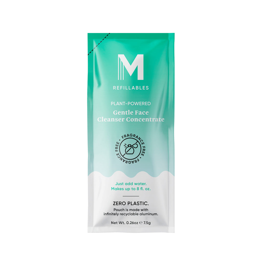 Sustainably refill your face cleanser or boosters. Pouches are 100% plastic free. Made from infinitely recyclable aluminum.