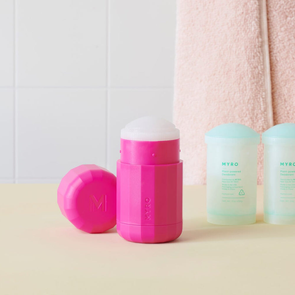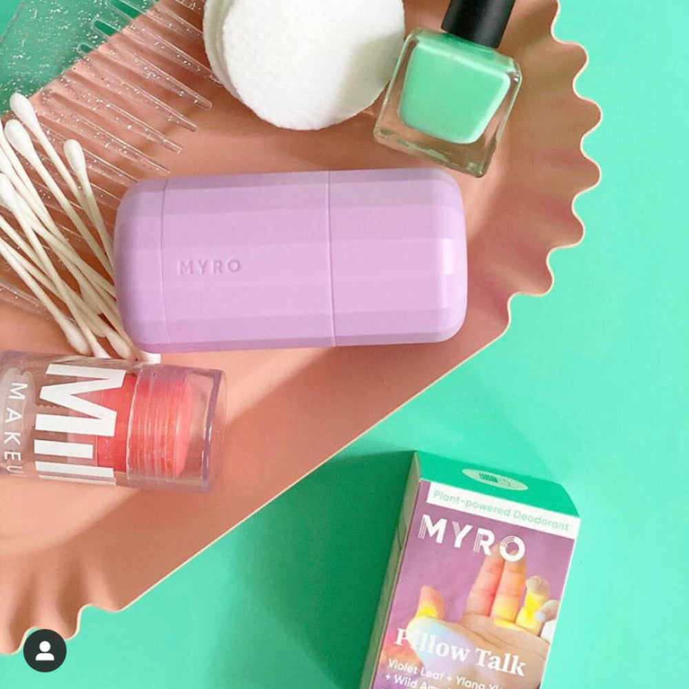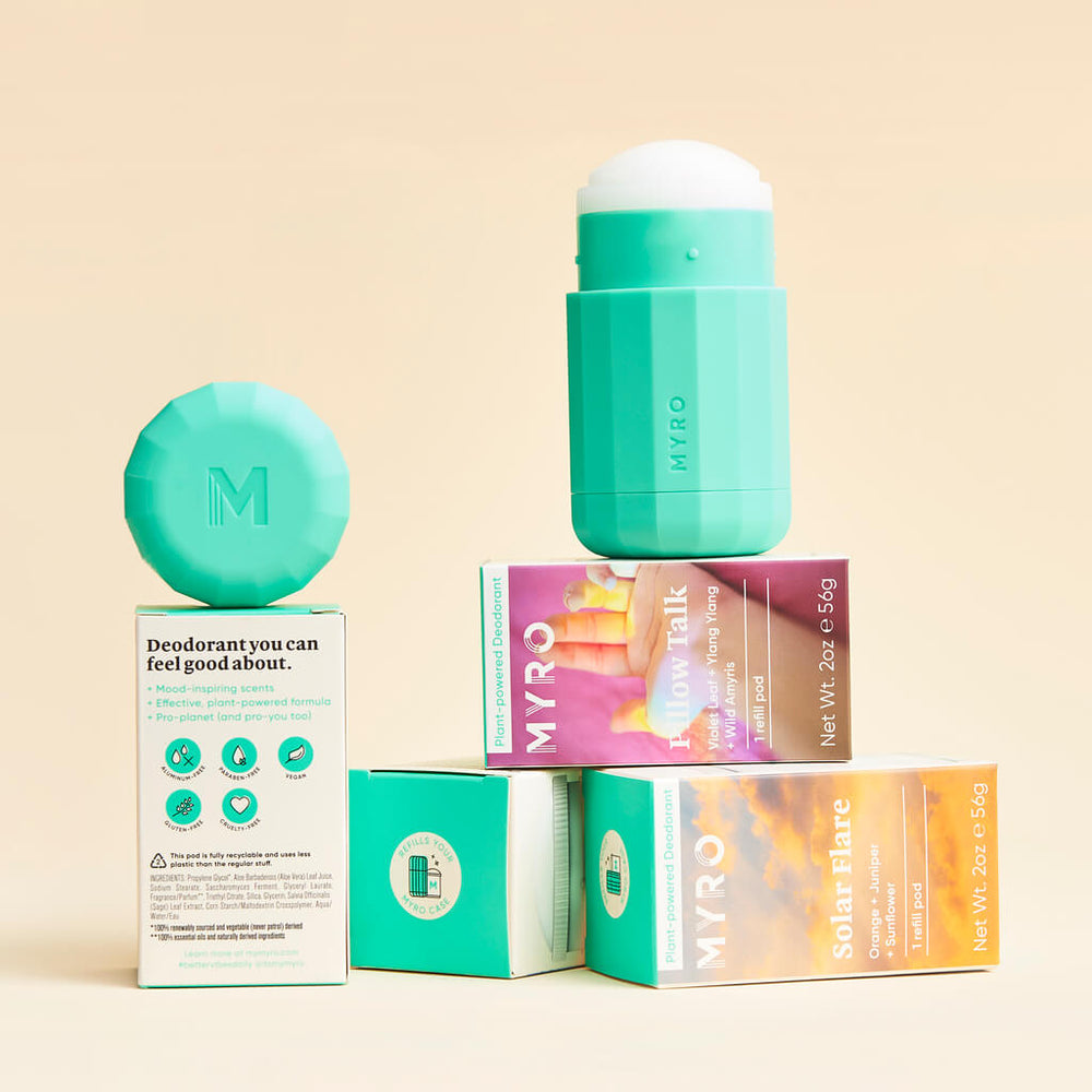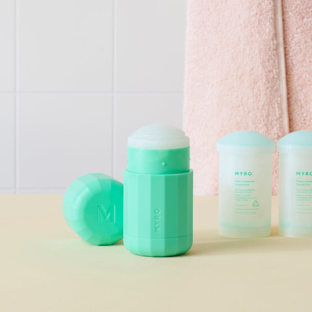 My first time using Myro deodorant, it works, last all day and comes in fresh scents, not heavy perfume scents. Can't wait to try Myro's other bath products! No reason to use any other deodorants and the case is beautiful!